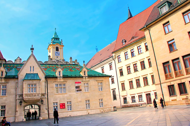 A Praça Principal é referida por muitos como o centro da cidade. Abriga a Stará radnica (Antiga Prefeitura), que é um complexo de edifícios do século 14, e a Maximiliánova fontána (Fonte de Maximiliano), a fonte mais famosa de Bratislava, erigida em 1572 por ordem de Maximiliano II, Sacro Imperador Romano-Germânico, para fornecer água à população.
