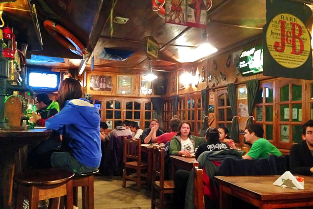 De estômagos forrados, retornamos ao hotel, descansamos um pouco e fomos tomar umas no Dublin. No entanto, havíamos esquecido que o pub não aceita cartão. O pouco dinheiro em espécie que havíamos no bolso foi suficiente para uns bons goles, mas não o bastante para esticar a noite ali. Então debandamos para o Bodegón Fueguino, um restaurante tipicamente argentino superbacana, situado na Av. San Martín, 859.