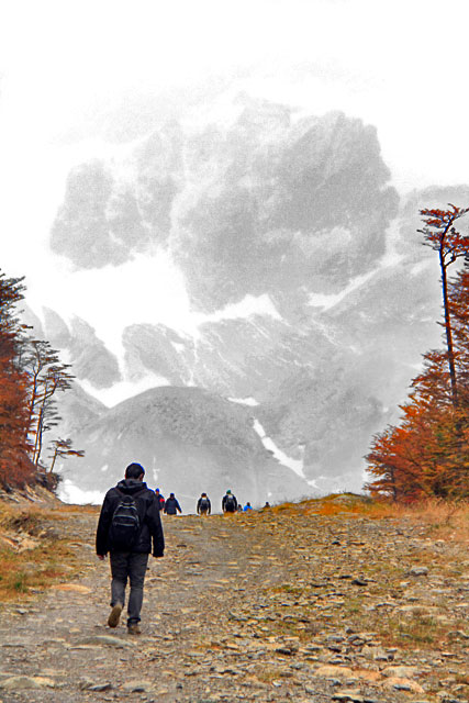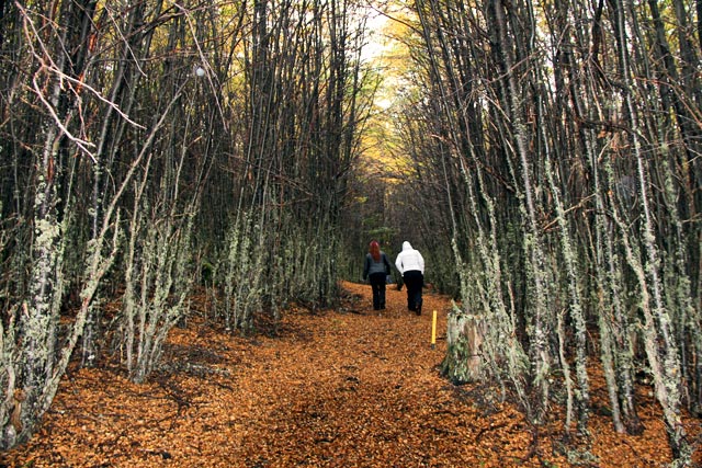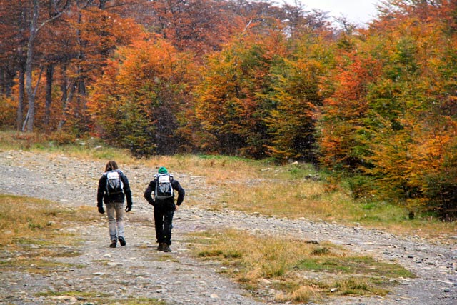Naquele ponto da viagem, eu e o Élcio, sujeitos extremamente urbanos, pegamo-nos fazendo um passeio ecológico. E não tínhamos escapatória, pois a Terra do Fogo é sinônimo de ecoturismo. Diferentemente de nós, a Cintia e a Isabel são praticantes assíduas de trekking e o fazem com a maestria de um índio. Lideram pelas trilhas feito cães de caça, saltam troncos de árvores como gatos, caminham igual a lagartos sobre sendas escorregadias e íngremes e jamais se cansam. Já meu amigo e eu somos do tipo que opta por trilhas asfaltadas, de preferência as que levam aos bares. Porém, tivemos que abafar a síndrome da galinha de granja e encarar alguns desafios da natureza. Estava ótimo!