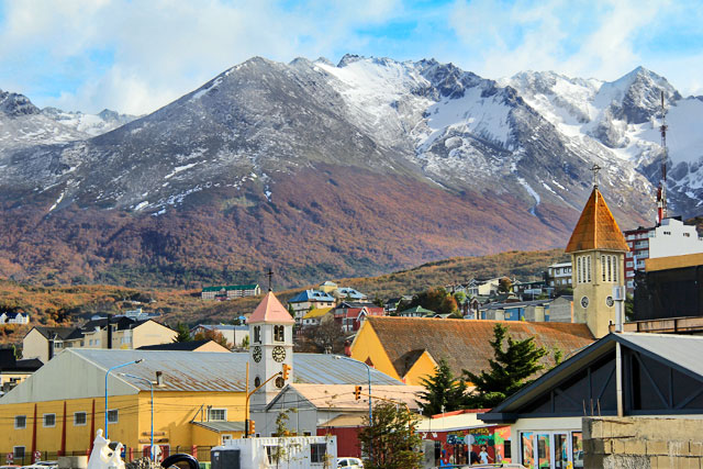 Eram 13h20 e o belo cordão montanhosos de Ushuaia ia se aproximando. Que cidade linda!