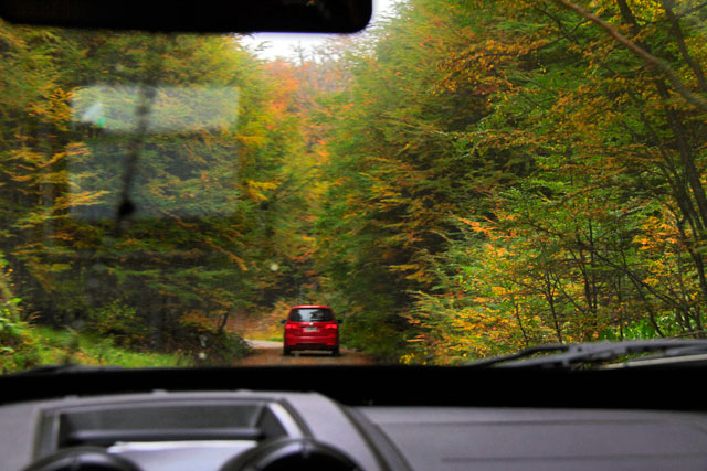 Dali, seguimos para o final da trilha. Pegamos a estrada e, debaixo de muita neve, fomos andando até o carro. Aquilo estava ótimo!