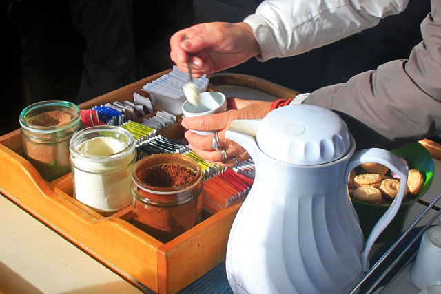 Despedimo-nos dos lobos bonachões e seguimos navegando. Na ocasião, foi servido um lanche composto por café, chás e biscoitos doces variados conhecidos como galletitas. Essas bolachas sortidas foram a sensação daquela merenda! Para tornar o lanche ainda mais gostoso, o céu se abria e o sol começava a lançar seus raios aquecidos sobre o c* do mundo.