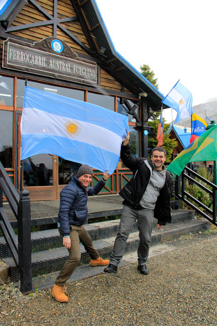 No caminho, antes de entrar no parque, conhecemos a estação do Tren del Fin del Mundo, comboio que funcionou entre 1909 e 1952, originalmente construído para servir à prisão de Ushuaia, principalmente no transporte de lenha. Atualmente, opera como um trem turístico, com guias em espanhol, inglês e português. Preferimos não fazer esse passeio. Hoje, arrependo-me um pouco disso, pois parece ser bem interessante.