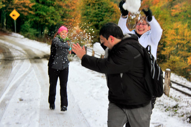 Em um determinado momento, as meninas e o Élcio voltaram à quinta série e começaram uma guerra de bola de neve. Muito divertido, mas decidi ficar de fora brincadeira. Se andar já estava difícil, levar pancada gelada na cara ou esborrachar no chão (a Cintia quase caiu) era algo fora dos meus propósitos. Entrei em acordo com a criança que mora dentro de mim e preferimos assistir à batalha de longe.
