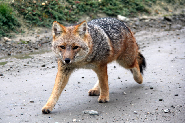 Terminamos a caminhada pela Senda Laguna Negra e seguimos de carro pela Ruta Nacional n.º 3. Num determinado trecho da estrada, fomos gentilmente abordados por uma raposa-colorada, o segundo maior canídeo da América do Sul, menor apenas que o lobo-guará. Lá, essa adorável criatura é conhecida como zorro colorado. Lentamente, ela se aproximou do nosso carro com um olhar de pobre coitada, como se estivesse sem comer há semanas. Virei-me para ela e disse “Lindeza, e eu que só comi pan de indio! Dezfaz esse olhar misericordioso e parte pra caça!” Brincadeira! Eu jamais diria isso. A bichinha era tão fofa que dava vontade de levar para casa e enchê-la de comida. Até projetei a cena da minha mãe sendo presa no aeroporto de Ushuaia por tentar carregar uma raposinha dessa para o Brasil.