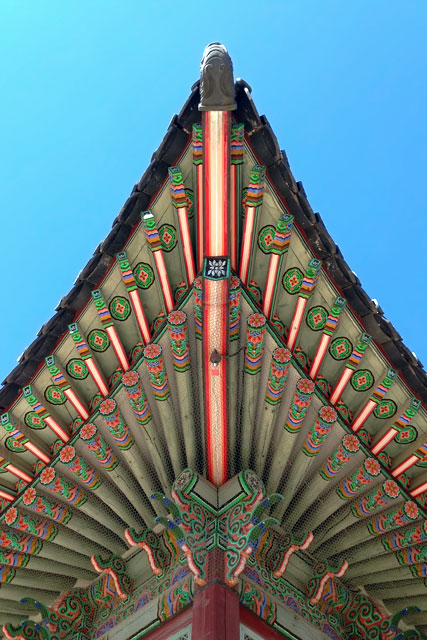 No início do século 20, grande parte do palácio foi arruinada pelo implacável Império Japonês. Desde então, o complexo vem sendo restaurado até atingir sua forma de origem. E palmas para os restauradores! Os detalhes da construção são tão apurados que cheguei a pensar que tudo era original, desde as estruturas dos edifícios até as pinturas meticulosamente trabalhadas nas sustentações dos telhados.