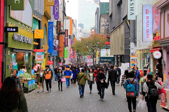 Caminhando pelas ruas de Myeong-dong, era impossível não cruzar com uma loja de cosméticos. Elas estão por todos os cantos, às vezes uma do lado da outra. Os fregueses têm a disposição marcas como Nature Republic, Innisfree, Tonymoly, Skinfood, Royal Skin, The Body Shop, Missha, Lioele e Etude House. Algumas são populares, outras mais sofisticadas. E não existe apenas uma loja de cada marca. É comum ver dois estabelecimentos de mesmo nome em um único quarteirão. Com tanta opção, é de se pensar que coreana feia é sinônimo de coreana descuidada. Para ir a esse paraíso dos cosméticos e de compras em geral, pegue a linha 4 do metrô e desça na estação Myeong-dong.
