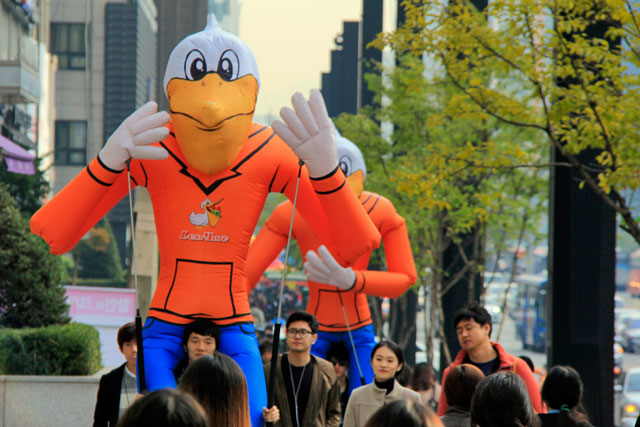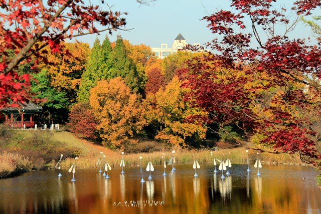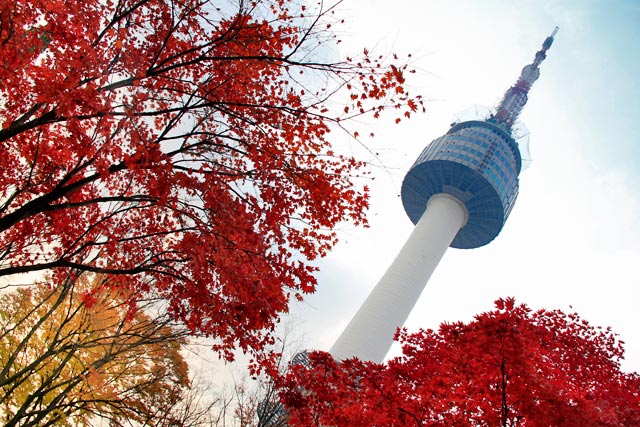 Estávamos embasbacados com o espetáculo tricolor do outono sul-coreano. Constantemente, meus leitores me perguntam qual época do ano é a melhor para se conhecer determinado lugar do planeta. Entre outras orientações, respondo que as primaveras são mais floridas e os verões, mais alegres. Contudo, eu e o Élcio fazemos nossas viagens quase sempre nos invernos, em que os preços são mais baixos, as filas são bem menores e as promoções são mais atraentes. Mas, para Seul, indico o outono. Os tons vermelho, verde e amarelo da vegetação são um espetáculo à parte. Não há uma área arborizada da cidade que não deixe o visitante hipnotizado. Nessa época, faz frio, mas nada que um chazinho, um bulgogi ou uma boa dose de soju não resolvam. Agasalhos também são importantes, é claro.