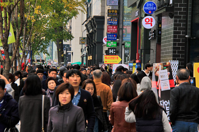 Empanturrados e com a boca em chamas – era muita pimenta! –, seguimos para o Mercado de Namdaemun. Fiquei estupefato com o número de pessoas que circulavam no local.