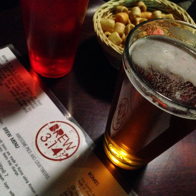 Deixamos o bairro e retornamos ao hotel. Felizmente, a poucos metros de onde estávamos hospedados, encontramos um bar superbacana chamado Brew 3.14. Mal sabíamos que aqueles becos apertados de Ikseon-dong eram um lugar e tanto para se passar a noite em Seul. Mas isso eu conto adiante.