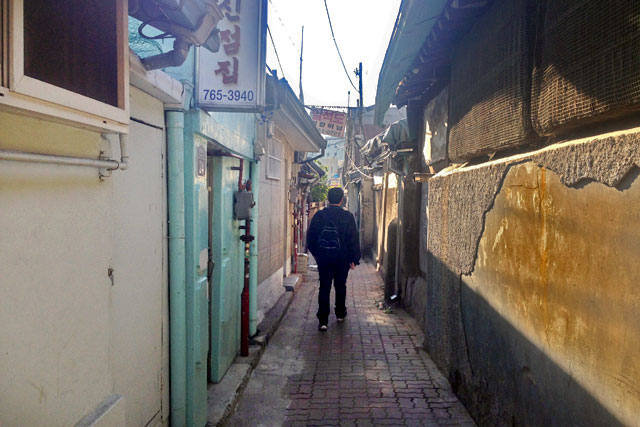 Descemos no ponto que fica de frente para a estação de metrô Anguk. Caminhamos alguns metros até nos entranhar no labiríntico Ikseon-dong. À medida em que nos aproximávamos do hotel, as ruas se estreitavam num caos arquitetônico formado por fios e construções singulares. Eu sabia que levaria um certo tempo para me acostumar com aquilo tudo. Sinceramente, não estava gostando. E acho que o Élcio também não. Éramos só nós dois naquela viagem, que teve início em uma belíssima jornada por Singapura.
