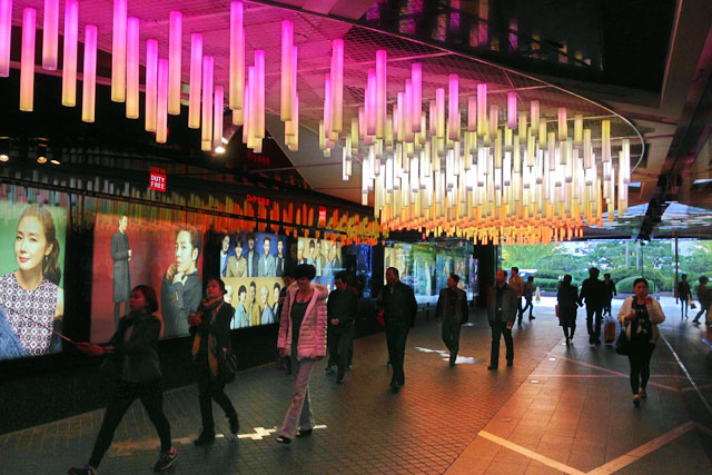Ainda na região, dirigimo-nos a um dos pontos mais cobiçados pelos turistas, a Lotte Dutty Free, situada no topo da Lotte Department Store. Logo na entrada desta loja de departamentos, passamos pela cafeteria do renomado Paul Bassett, premiado barista australiano responsável pelo espresso mais delicioso que já tomei na minha vida. Eu achava que os cafés que provei na Itália eram imbatíveis, mas as dezenas de mulheres sentadas às mesas daquela cafeteria – eu e o Élcio éramos os únicos homens – concordariam comigo de que os diversos blends ali servidos não são encontrados em qualquer canto do planeta. A Paul Bassett é parada obrigatória para quem vai à Lotte! Já a Lotte Dutty Free é uma das piores atrações de Seul. É um free shopping como os dos aeroportos, que vendem os produtos de sempre, sem muita inovação. Os preços não são os melhores, mas vale a pena dar uma subidinha até lá para ver japoneses e chineses se esbofeteando por uma caríssima bolsa da MCM.