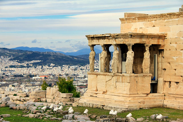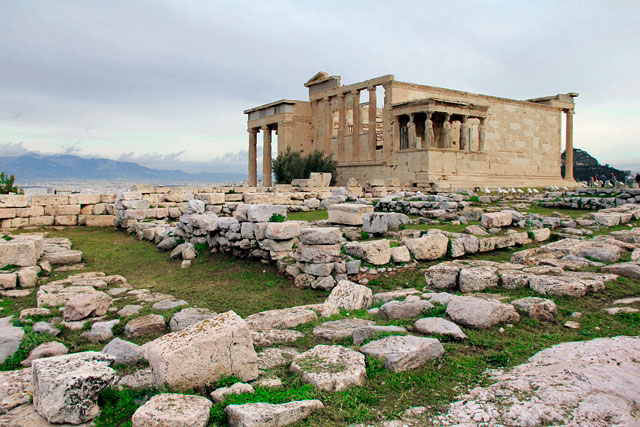 Do Partenon, rumamos pela Acrópole até o Erecteion, templo dedicado não somente a Atena, mas também a Poseidon, deus supremo do mar.