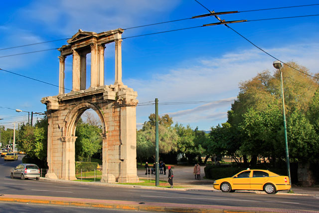 Estávamos bem adiantados no roteiro daquele sábado. Conseguimos vencer as atrações antes do previsto, então resolvemos ir a outros pontos turísticos que estavam reservados para outro dia. Após conhecer o museu, fomos caminhando pela Dionysiou Areopagitou até a Av. Andrea Syngrou, onde está localizado o Arco de Adriano.