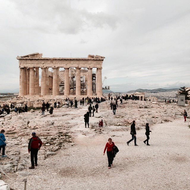 Essa imagem monocromática que se tem não somente das cidades, mas também dos monumentos e estátuas gregas é um dos mais belos exemplos da causticidade do tempo. Embora a palidez das construções atenienses esculpidas em mármore possuam uma imperiosidade estética inegável, o que hoje é descorado já foi vividamente colorido. Graças à utilização das luzes ultravioleta e infravermelha e de raio X, cientistas descobriram que, na Grécia Antiga, as estátuas e edifícios de Atenas eram cobertos por cores vibrantes. No entanto, não consigo imaginar o Partenon pintado de verde, vermelho e azul, conforme foi identificado. Prefiro ele na forma como está, desbotado, mas sempre magnificente.