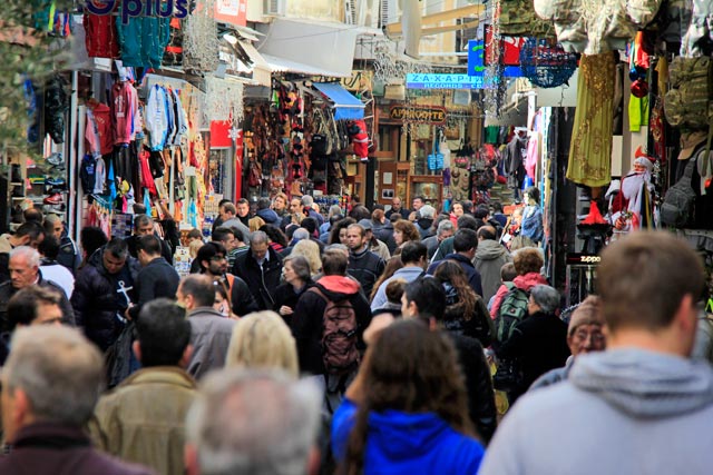 Conhecida pelo seu mercado de pulgas, a Monastiraki situa-se num dos principais distritos de compras de Atenas. Lá, encontra-se de tudo um bocado. Num primeiro momento, não gostei nem um pouco, pois esperava encontrar um grande comércio de antiguidades à moda grega (se é que isso existe). Mais do que artigos vintage, vi uma oferta massiva de roupas falsificadas e bugigangas made in China.