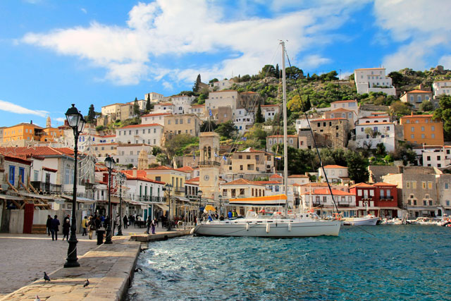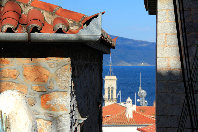 Às 12h30, chegamos a Hidra. Que lugar mais lindo! Não é tão bela quanto as ilhas gregas mais famosas, mas é de um charme sem fim. Sua principal cidade chama-se Porto de Hidra. As casas que preenchem a encosta dão um toque muito especial à paisagem natural, caracterizada, principalmente, pelo azul profundo das águas.