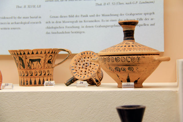 Assim como seu nome sugere (Cerâmico, em português), em Kerameikos funcionava um estabelecimento de ceramistas e de pintores de vasos, considerado, na sua época, o maior produtor dos famosos vasos da região da Ática. As constantes enchentes de um córrego que atravessa o local fizeram com que a área fosse convertida numa necrópole, tornando-se, gradualmente, o cemitério mais importante da Grécia Antiga. O lugar também abriga o Museu Arqueológico de Kerameikos, que preserva e expõe as peças encontradas naquele sítio arqueológico, além das provenientes de outras localidades.