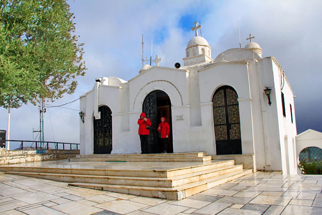No mirante do Licabeto, encontram-se a capela de São Jorge, um campanário e um café bem aconchegante.