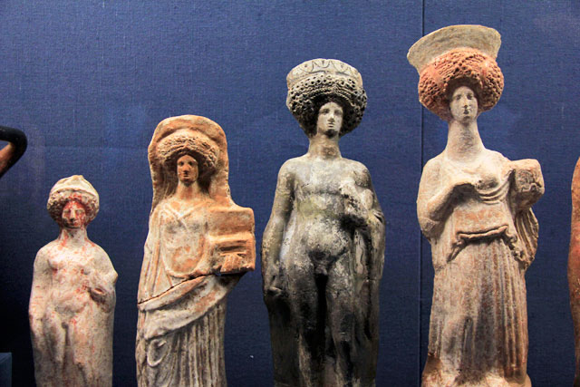 A exibição mais importante do museu está associada aos objetos ligados à atividade cívica que promoveram e institucionalizaram a Democracia Ateniense. Ali, encontrei a peça mais procurada por mim nesta viagem: o óstraco. Trata-se de um fragmento de cerâmica que os atenienses utilizavam para escrever o nome de personalidades ilustres, as quais desejavam que fossem expurgadas da sociedade por dez anos. Daí a origem do termo ostracismo. Funcionava como uma cédula de voto. Note, na imagem abaixo, o nome de Temístocles (em grego Θεμιστοκλῆς) repetido em vários óstracos. Sua intransigência em tempos de paz rendeu-lhe o exílio.