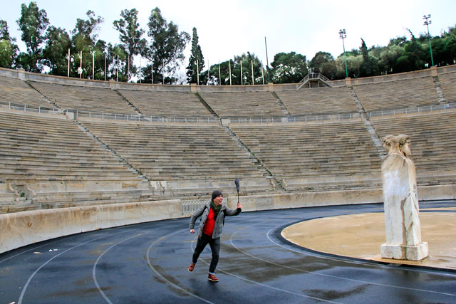 O Panatenaico foi construído em 566 a.C. e reconstruído em 329 a.C. Encontrava-se em ruínas, até que, em 1870, foi completamente reformado. Em 1896, sediou os primeiros Jogos Olímpicos da era moderna e, em 2004, agregou um simbolismo muito especial à história das olimpíadas hospedando as competições de tiro com arco e a chegada das maratonas masculina e feminina. Lembra da emocionante disputa em que o brasileiro Vanderlei de Lima liderava a maratona até que o sociopata-maltrajado-idiota-religioso Cornelius Horan o empurrou para fora da pista? Pois é, os 42 quilômetros da prova foram encerrados ali no Panatenaico, com Vanderlei se desmanchando em lágrimas de alegria por conquistar o bronze. Padre maldito!