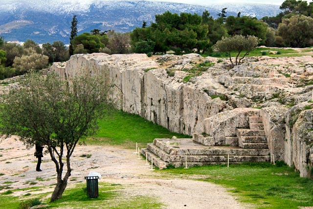 Rumamos para a atração mais importante do Monte Philopappou: Pnyx, uma colina que teve um papel fundamental na institucionalização da democracia. Foi o primeiro local onde a eclésia, principal assembleia ateniense, se reunia para decidir o destino da sociedade. No topo, está a bema, uma plataforma elevada onde os oradores vociferavam ao público presente.