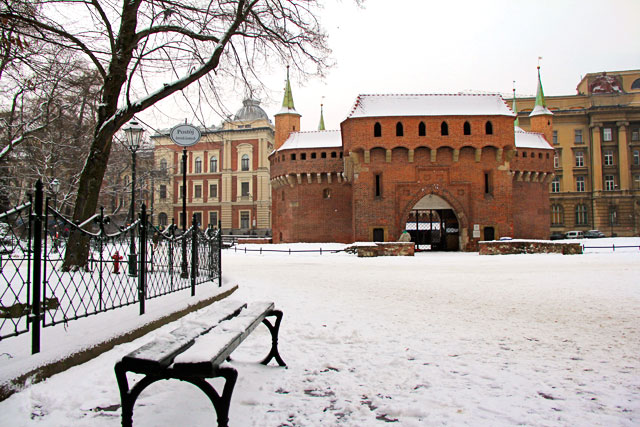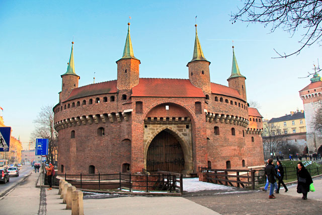 Não muito distante da igreja e de frente para o Monumento Grunwaldzki, está o Barbacã de Cracóvia (Barbakan w Krakowie), uma fortificação no estilo gótico construída em 1498 como parte das muralhas que protegiam a cidade real. O edifício, que se encontra muito bem preservado, servia como posto de controle para todos que entravam em Cracóvia.