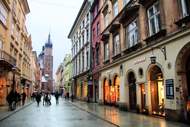 Rua Floriańska. Igreja de Santa Maria ao fundo