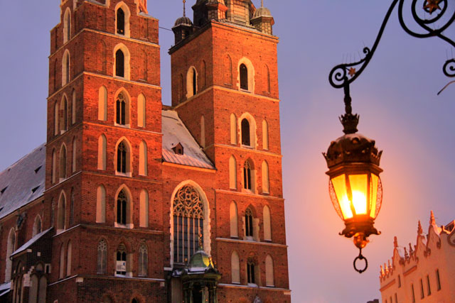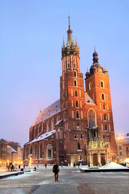 Chegamos a uma das principais atrações da cidade: a Praça Principal do Mercado (Rynek Główny), uma das maiores praças medievais do mundo. Lá, visitaríamos, primeiro, a magnífica Igreja de Santa Maria (Kościół Mariacki), construída, originalmente, no século 13 e reconstruída em 1365. Seu edifício no estilo gótico possui 80 metros de altura. No seu interior, destaca-se o famoso altar esculpido pelo artista alemão Veit Stoss.