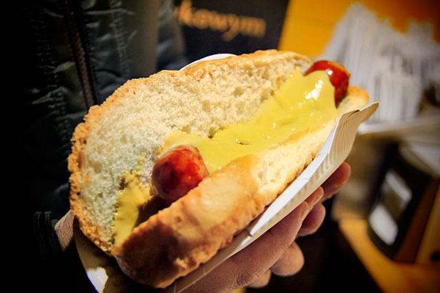 Cachorro-quente servido em estabelecimento da Rua Grodzka