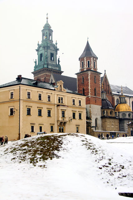 Outras atrações do castelo são o Antro do Dragão (Smocza Jama) e os jardins do complexo. Destes, não se via uma folhinha verde por causa da camada espessa de neve. De qualquer forma, ver planta também não figurava no nosso rol de interesses. Entretanto, manifesto meu arrependimento por não ter ido ao Antro do Dragão, uma caverna de 276 metros de comprimento por 15 de largura, que deu origem à primeira versão da história do Dragão de Wawel, uma das mais antigas lendas polonesas. Graças à minha displicência na hora de planejar o roteiro, não tomei conhecimento dessa atração.