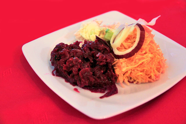 Tirando a textura encharcada, o gosto da panqueca é muito bom, mas arreguei na metade do prato. Preferi reservar o que resta da parte rosada do meu fígado para outras gulodices polonesas mais interessantes. O Élcio, que também não se simpatizou com a aparência da iguaria, pediu um modesto cachorro-quente. Fiquei com inveja.