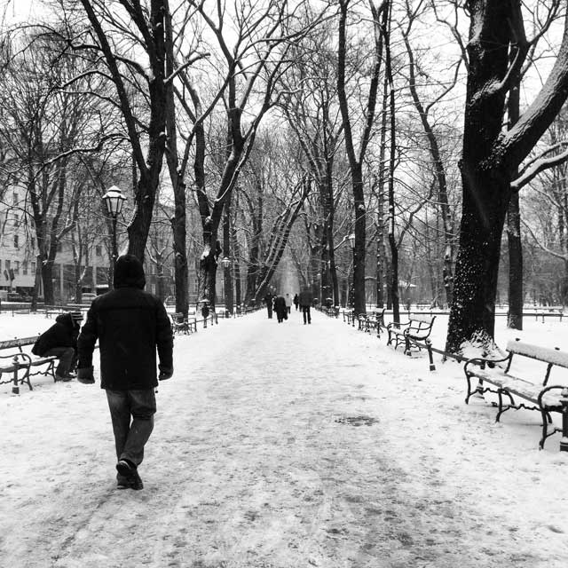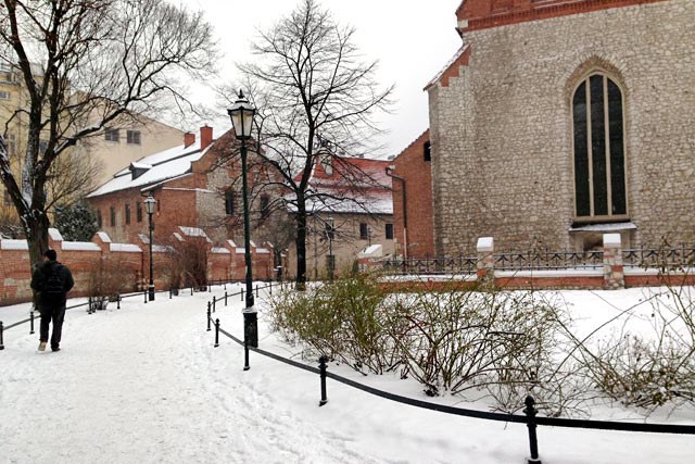 Nesta viagem, fomos somente eu e o Élcio. Chegamos a Cracóvia às 13h15. Mal nos instalamos no modesto, mas confortável Hotel Wyspiański e fizemos o que mais gostamos: saímos para bater perna. Nevava um pouco, e a cidade estava esbranquiçada.